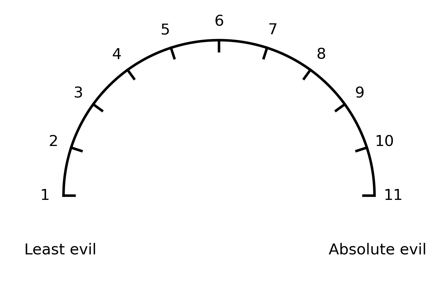 I’m not here to answer these difficult questions for you, or to argue with you. I’m simply here to offer you this tool: the evil scale. Try it on yourself, try it on others and see what you think. Are we all capable of evil? Do we go up and down on the scale? Would you say that it’s evil to do to others what they have done to you? I’m not asking from a religious standpoint. Just presenting you will a problem and a tool to help you solve the problem for yourself. I know where I am on the scale, but I’ll let you pick your own number.